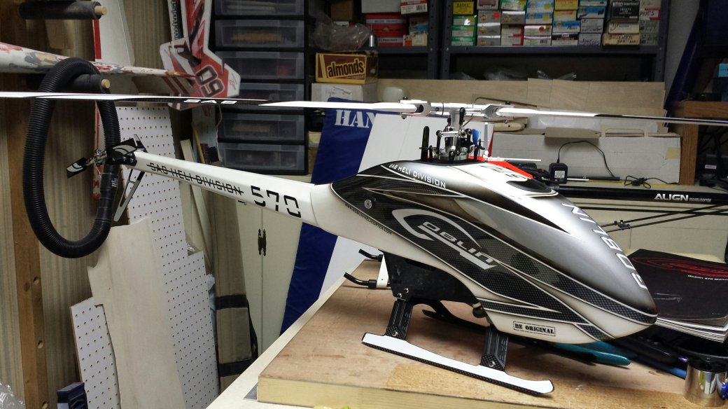 I've been wanting to get another helicopter and had been looking very hard a buying a Trex 700. I had looked at several used ones on several different helicopter sites and DecalDennis had also offered me one at a good price. The down side of the 700 over my Trex 550 is two 6S batteries as apposed to one. I had also looked at the Goblin 570's, but they are pretty pricey. Then last Friday I was checking the classifieds and a brand new listing popped up. A Goblin 570 newly built and never flown at a really awesome price. There was no way I could pass it up. I've always wanted a Goblin, and since the 570 uses the same batteries I use in the 550 it should work great.