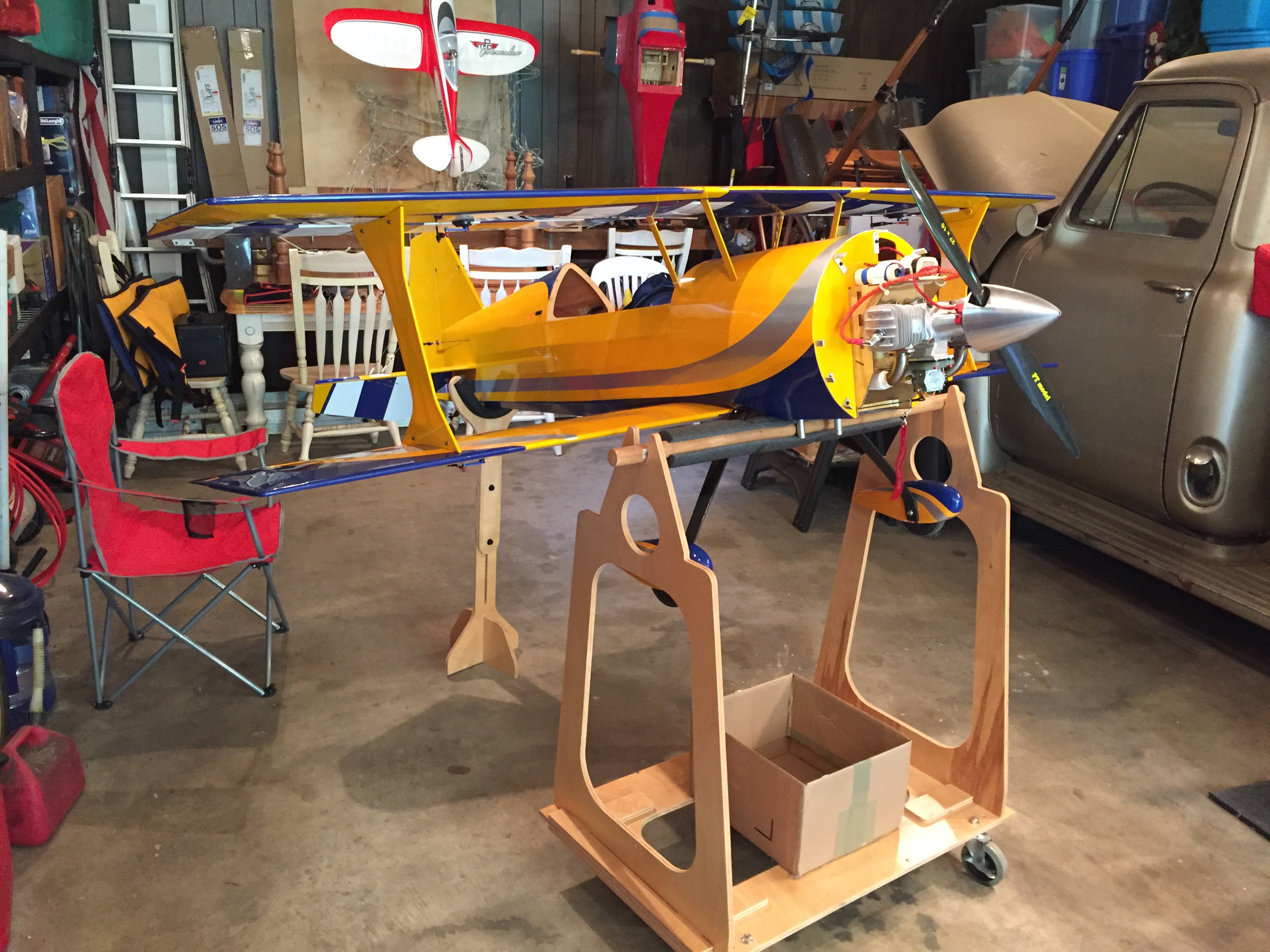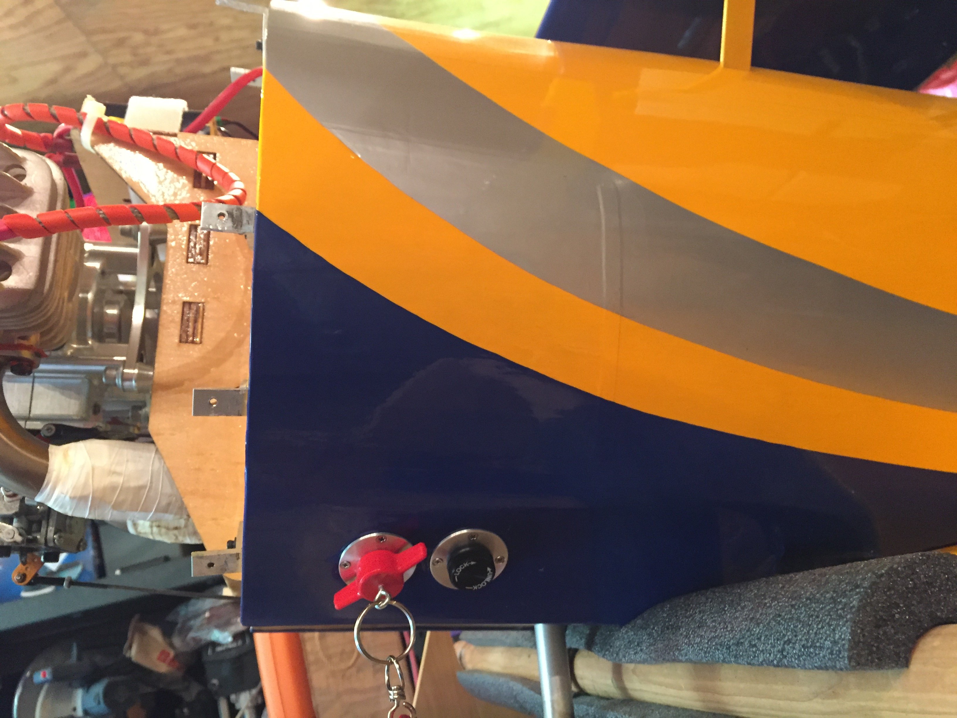 Productive day in the shop today. Pulled out the fuel tank, installed new tubing, along with the new fill and return ports. Finished all the wiring and receiver install, and dove into Flight Mode programming and linkage adjustment. Postman should be bringing Red Line oil early this week, so it’s almost time for engine tuning. A few more hours of dialing in the control throws, and fly next weekend. That’s the plan anyway.