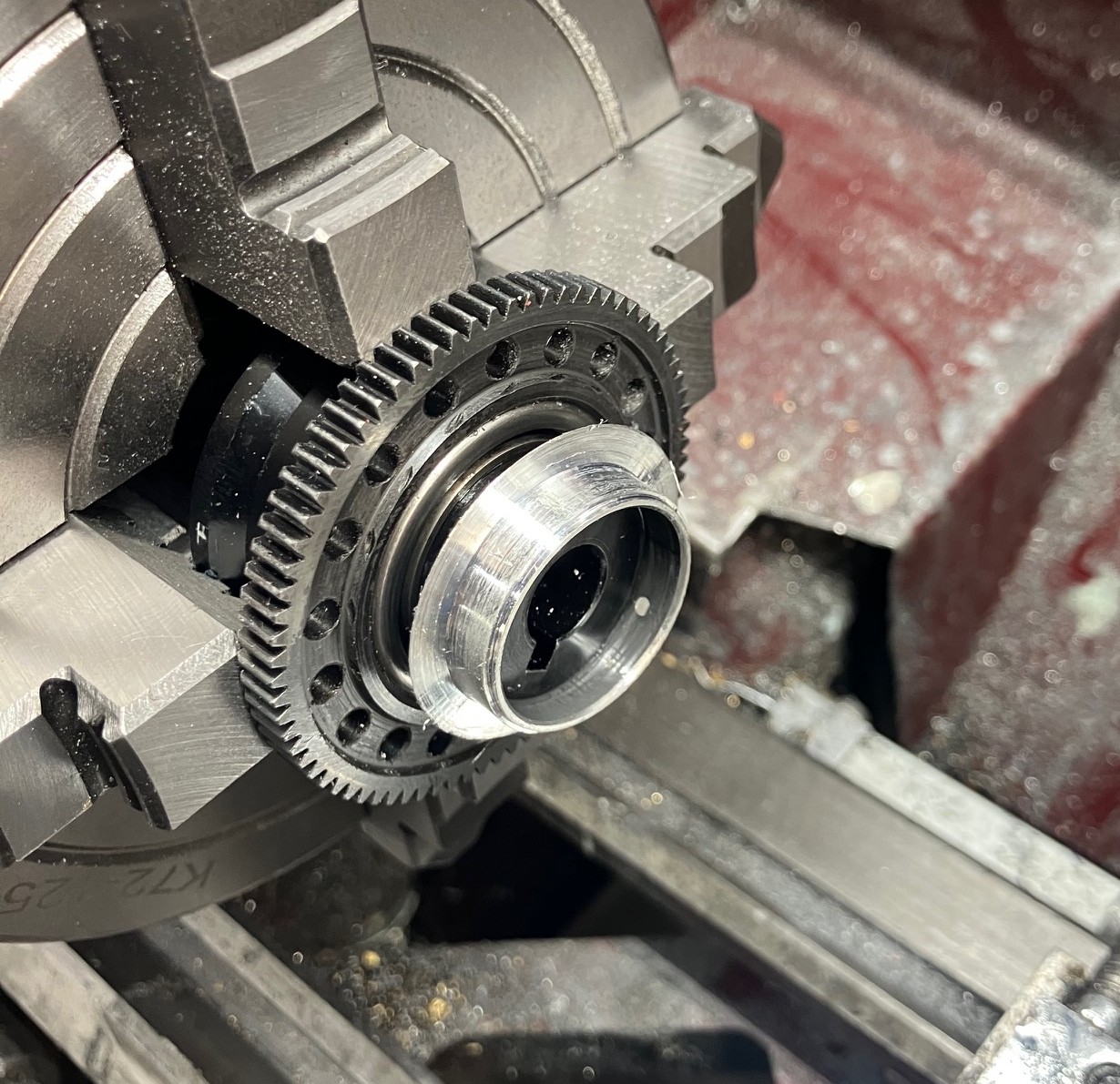Started looking at the starter conversion on Saito. The Ephil engine and the Saito are both 10 mm shafts. The prop hub on the Saito is mounted to the shaft with a tapered collet while the Ephil clutch hub is a straight 10 MM bore with a key slot, The clutch hub has the magnet installed for the ignition however it is too small for the Saito pickup. Measured the taper of the collet and found it to be .113 mm/mm. Found this a little odd, was expecting a whole number like 1 to 8. Set up the clutch hub and cut off the aluminum ignition magnet ring. Starting setting up compound slide but decided it has too much slop and needs reworked.