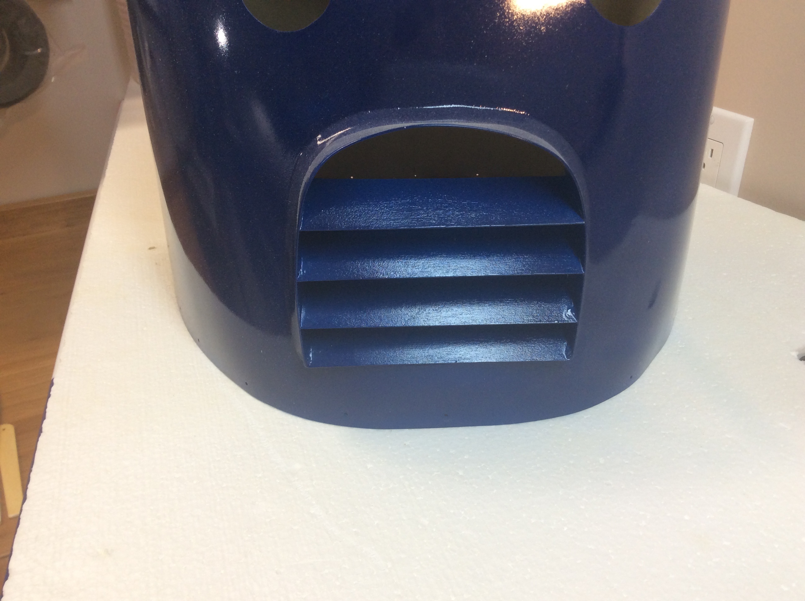 Hi Nick need some help if you look at the picture you should recognize it. It is one of your air deflectors. It is sitting on my AJ Laser 115. Unfortunately it is to small. Need one that is 28% bigger. The one on the cowl is 90 mm across the opening it needs to be about 160 mm wide to fit and look correct. Can you help in any way please.